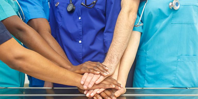 Multiethnic doctor hold hands
